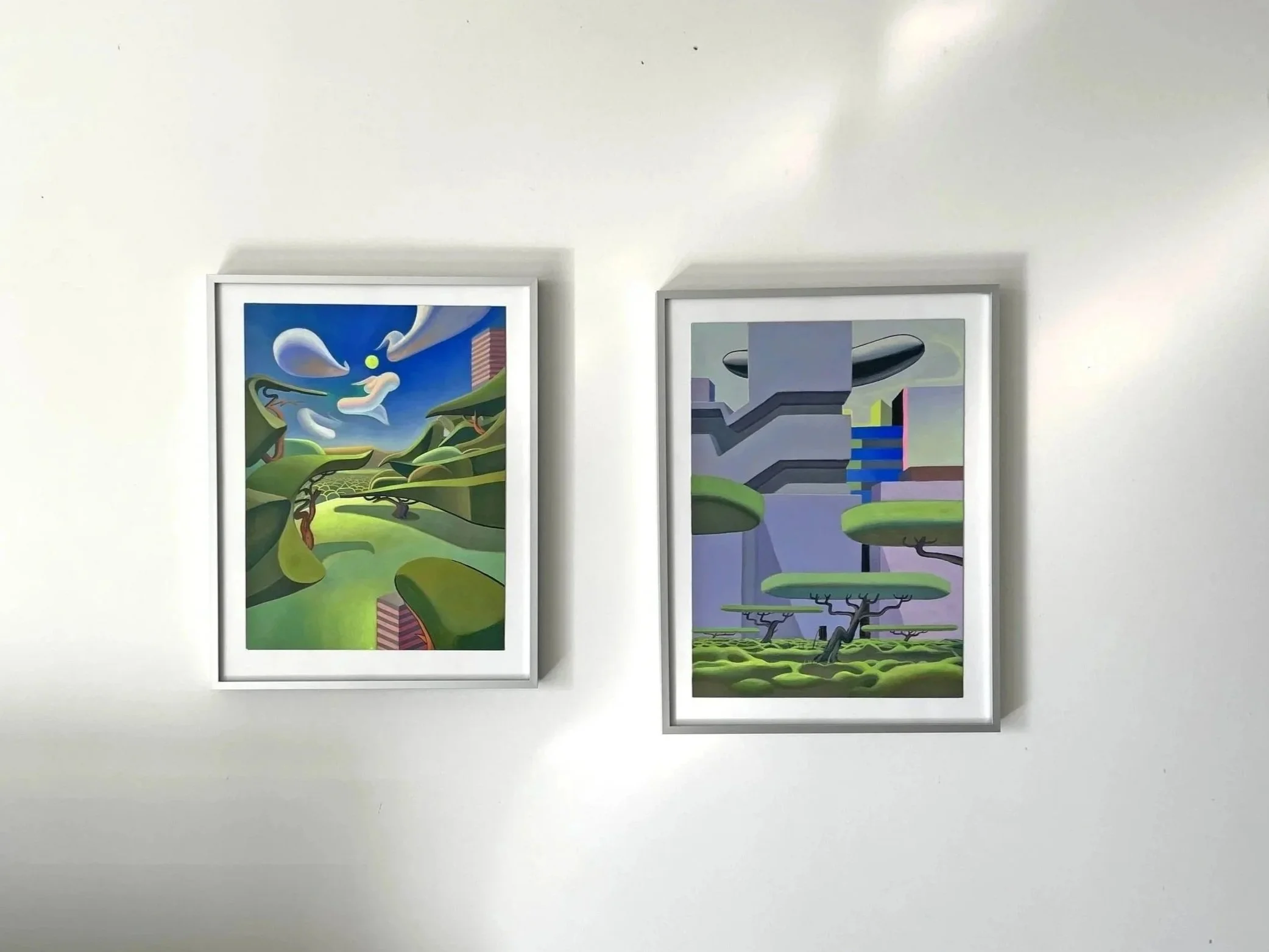 Nico Pearleyes (Francia, 1989) combina una técnica pictórica depurada con una imaginería propia de la gráfica digital. Curvas que evocan trazos vectoriales, volúmenes, color y transiciones cercanas a la estética del software conviven en un lenguaje que tensiona lo artesanal y lo digital.